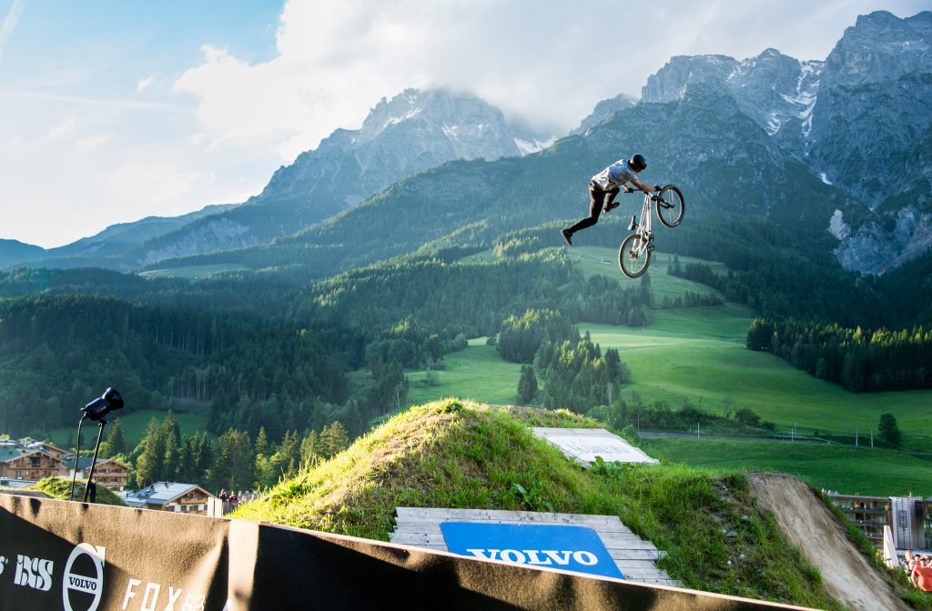 Capturing the action at dirt jump spectacular, 26 Trix, at the ‘Mercedes-Benz UCI Mountain Bike World Cup’ and ‘Out Of Bounds Festival’ in Leogang, Austria. World-class athletes brought the heat, with Diego Caverzasi’s (ITL) flawless run taking gold, Nicholi Rogatkin (USA) flying in second, and Simon Pagès (FR) in third place.