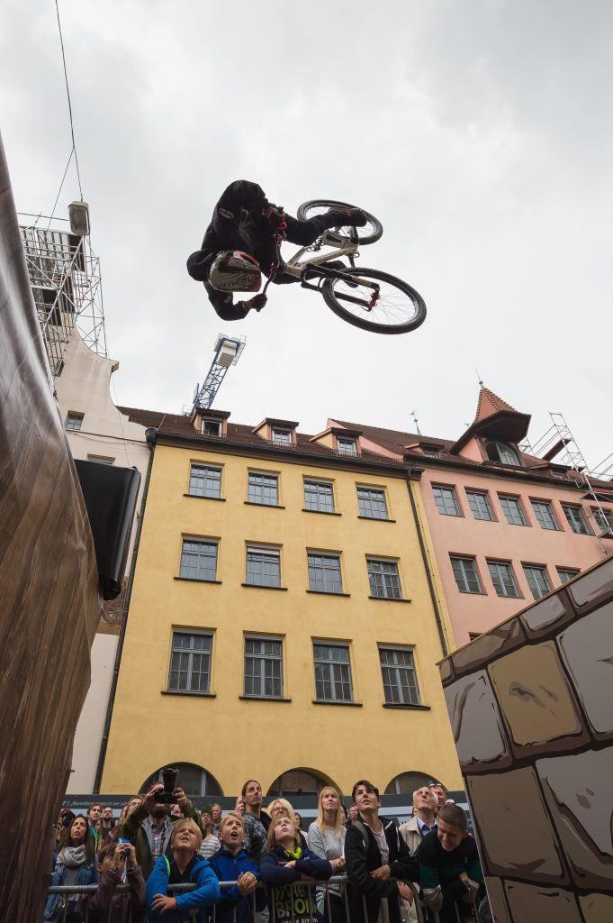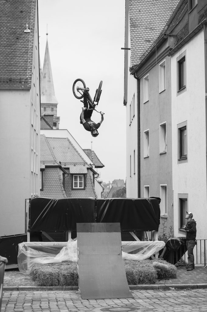 Photographing the ultimate urban freeride MTB contest in the medieval plazas of Nuremberg, Germany. With world class podium placers, Nicholi Rogatkin, Emil Johansson and Szymon Godziek, who took freeride to another new level. Literally.